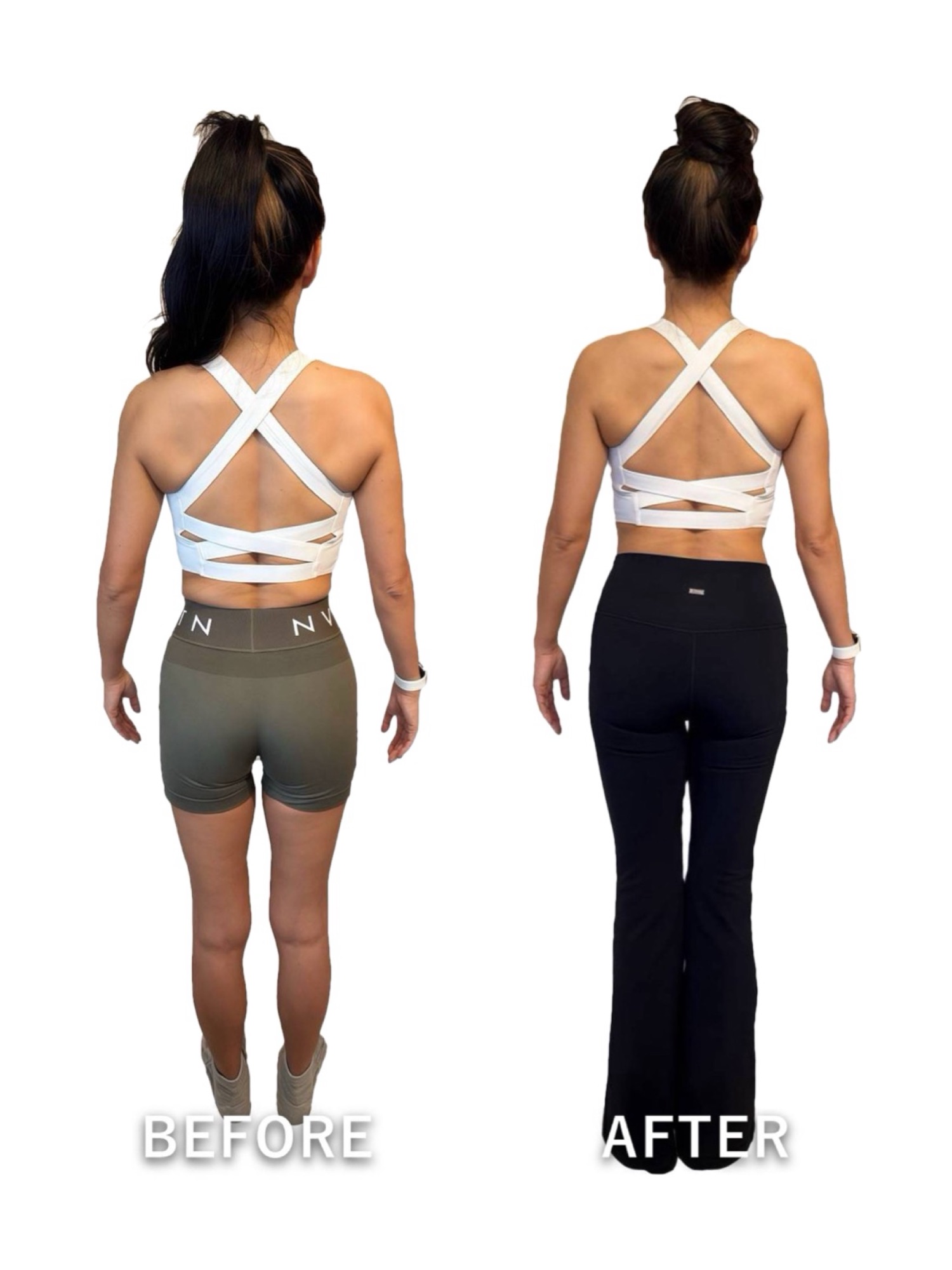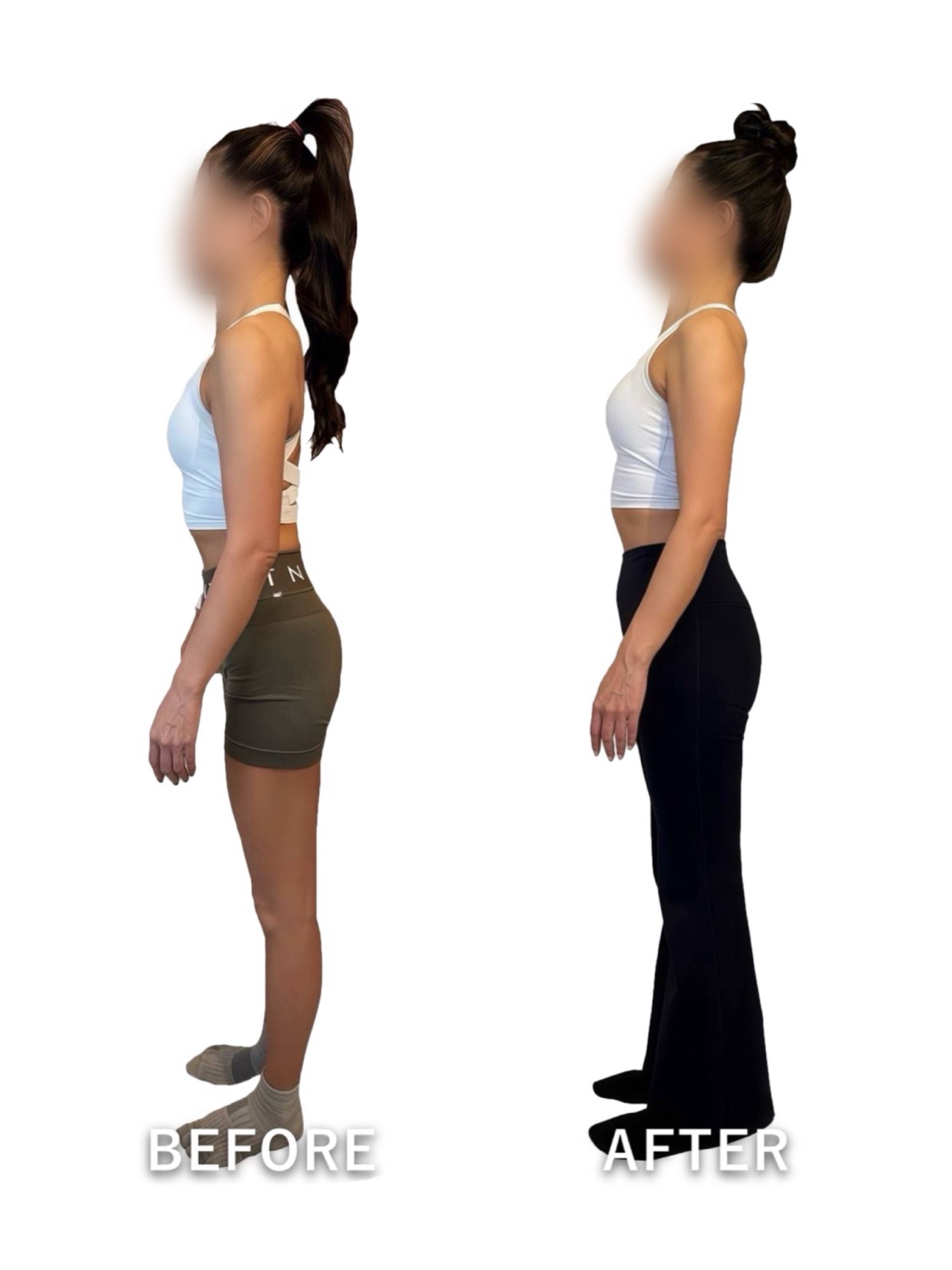 BEFORE&AFTER 2025年12月7日 最終更新日時 : 2025年12月7日 mana \ 50代 女性のお客様です /※レッスン6回の変化です 前傾姿勢の改善が見られ前に倒れていた骨盤も起こせるようになってきました!前面の筋緊張が緩和され胸が開いたおかげでバストの位置も上がっています♪